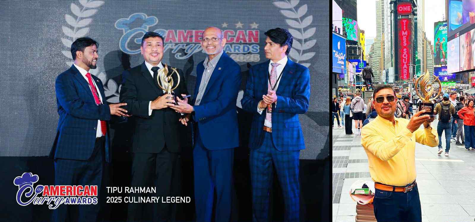 নিউইয়র্কে প্রথমবারের মতো আয়োজিত হলো ‘আমেরিকান কারি অ্যাওয়ার্ড ২০২৫’। এতে কারি লিজেন্ড সম্মাননা পেয়েছেন বাংলাদেশ ক্যাটারার্স এসোসিয়েশন (বিসিএ) চীফ ট্রেজারার মৌলভীবাজারের টিপু রহমান ।