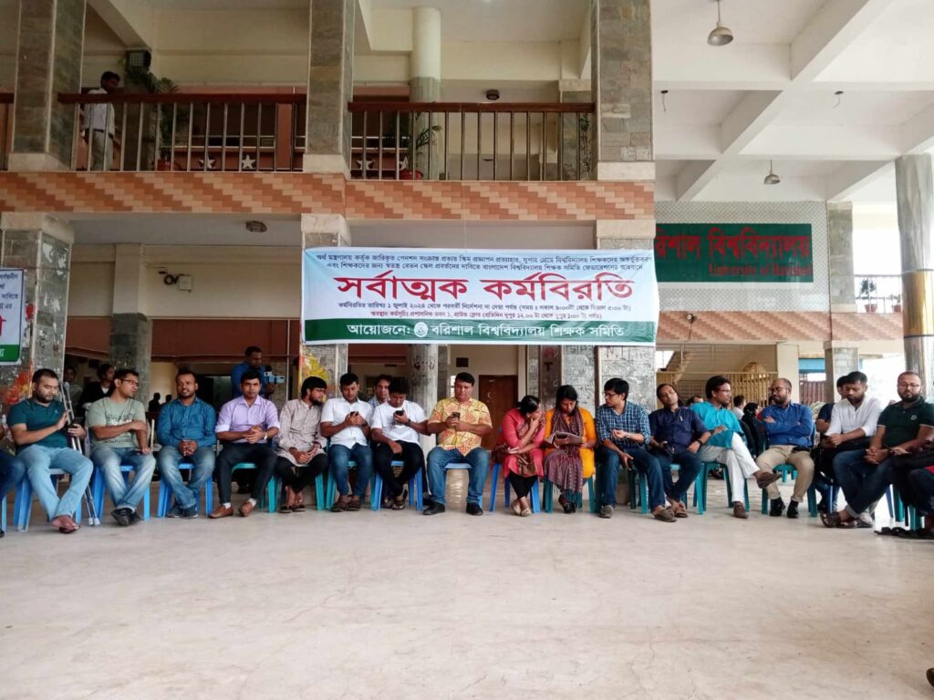 বরিশাল বিশ্ববিদ্যালয়ে ক্লাসরুম ও শিক্ষক সংকটে এমনিতেই সেশনজটে রয়েছেন শিক্ষার্থীরা, এদিকে সর্বজনীন পেনশন ‘প্রত্যয় স্কিম’ এর প্রজ্ঞাপন প্রত্যাহার,বিশ্ববিদ্যালয় শিক্ষকদের বেতন সুপার গ্রেড ও স্বতন্ত্র বেতন স্কেল প্রবর্তনের দাবিতে বাংলাদেশ শিক্ষক সমিতি ফেডারেশনের কর্মসূচির সাথে একাত্মতা ঘোষণা করে ক্লাস পরীক্ষা বর্জন সহ সর্বাত্মক কর্মবিরতিতে গিয়েছেন বরিশাল বিশ্ববিদ্যালয়ের (ববি) শিক্ষকরা। ফলে আজ থেকে ক্লাস-পরীক্ষা বন্ধ হয়ে অচল অবস্থার মধ্যে পড়ে সেশনজটে বেড়ে যাওয়ার আশংকা করছে সাধারণ শিক্ষার্থীরা।